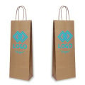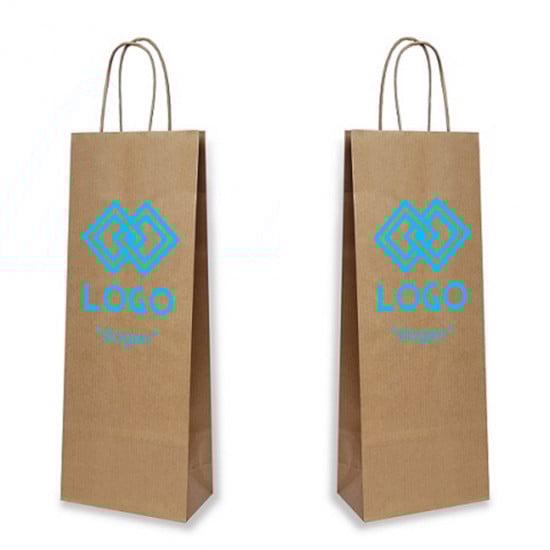 These bags can be printed with any logo, design or text. It might make a perfect advertising for companies and wineries. Thanks to its twisted ears the load capacity is high and it's suitable for decorative packaging of any drink. It is available in brown colour which can be printed in different ways and according to your requests. You can choose between single-sided and double-sided printing.